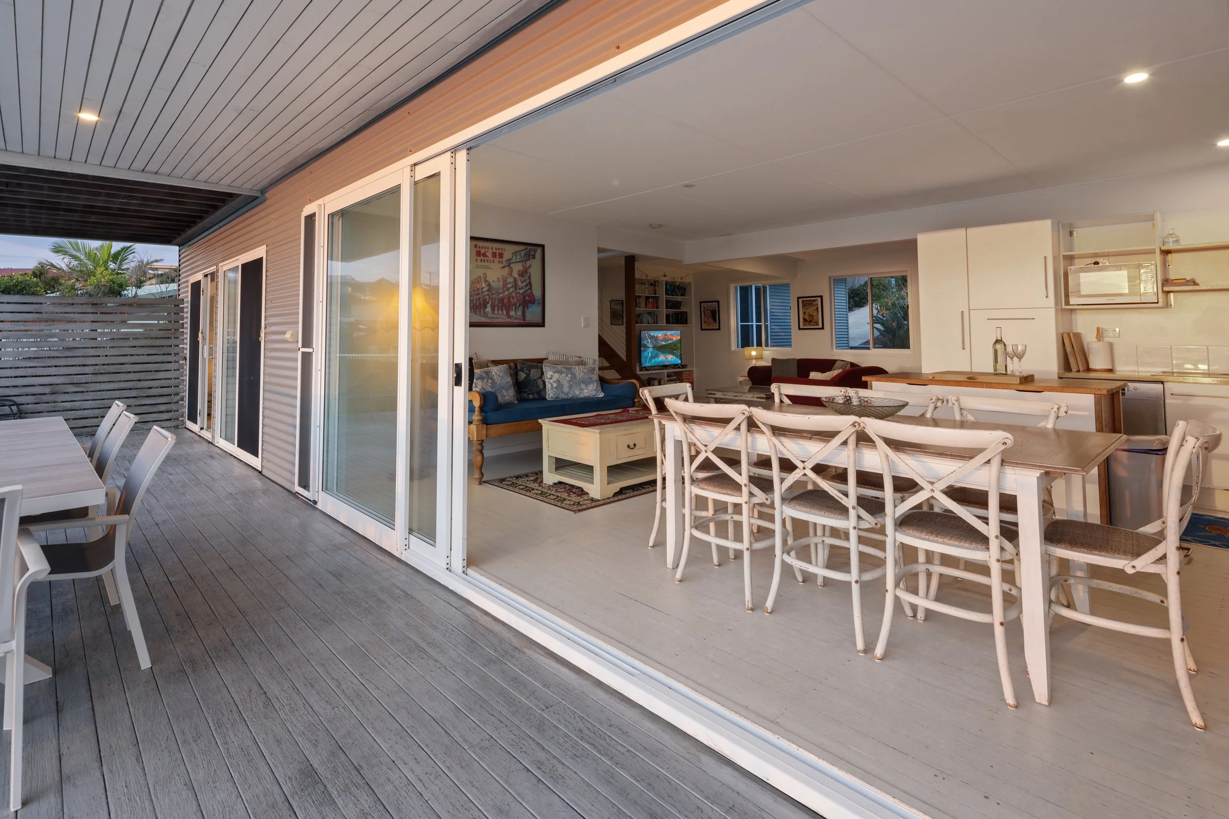 This fully self-contained four-bedroom home comfortably sleeps up to eight guests and offers uninterrupted ocean views from its expansive deck—perfect for spotting whales, dolphins, or stargazing on clear nights.